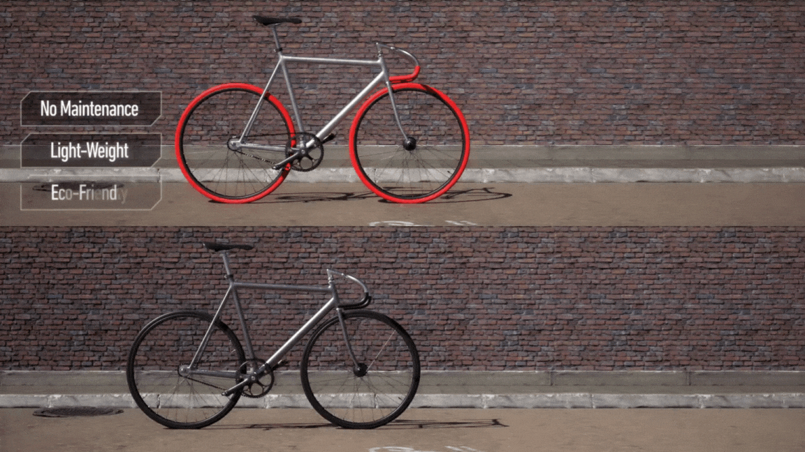 Tannus Airless is the first solid bicycle tire to have performance and weight comparable to those of traditional tyres. The innovative Aither 1.1 compound allows you to have a 100% puncture-proof bike tire without sacrificing performance and comfort.